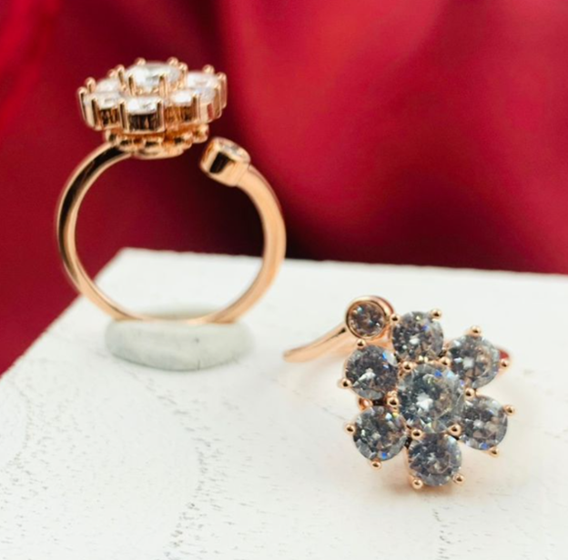 ANILLLO RODIO GIRATORIO FLOR CIRCON GRANDE BLANCO ROSA