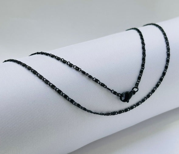 CADENA NEGRA CARACOL ACERO INOXIDABLE 60CM