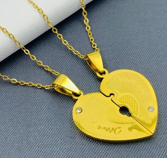 DUO CORAZONES PARTIDOS DORADOS ACERO INOXIDABLE