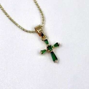 DUO CRUZ DORADO CIRCON VERDE RODIO