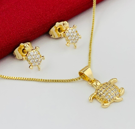JUEGO RODIO TORTUGA CIRCON DORADO
