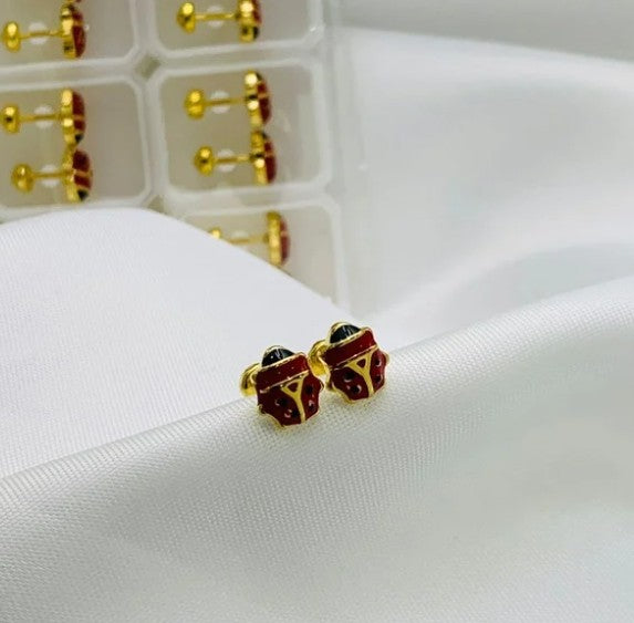 TOPO MARIQUITA ROJA ACERO DORADA